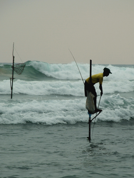 Na jihu Srí Lanky se ještě místy udržuje tradiční styl lovení ryb, při kterém rybáři balancují na kůlech.