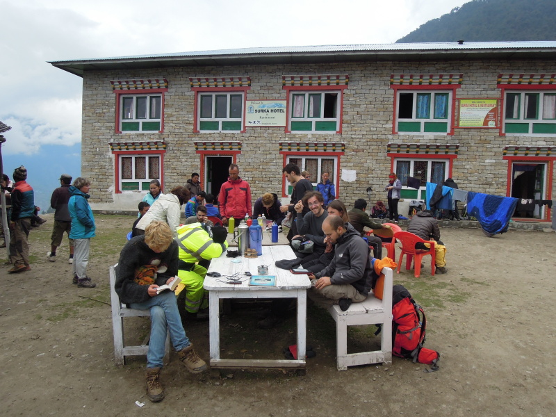 Chodník na dně údolí Langtang byl rozbitý, někteří cizinci a místní, kteří nebyli evakuováni nebo se jim nějak podařilo utéci, prošli přes Khangjing.