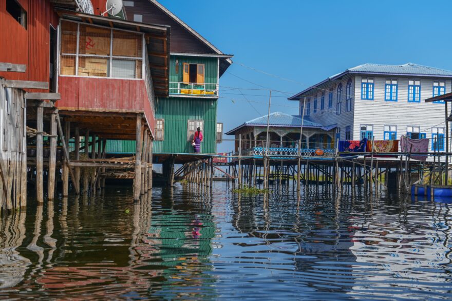 Mladá prodavačka na tržišti poblíž pagody Phaung Daw Oo. Nam Pan Market je pětidenní rotující trh. Místní kmeny etnických menšin sem cestují z celého regionu a na tržišti mnoha vůní a barev prodávají vše od betelových listů přes ovoce, zeleninu, až po suvenýry pro turisty. Ochutnáte tu nejrůznější druhy ryb, včetně úhořů, čerstvě ulovených z jezera, můžete se tady dokonce nechat i ostříhat a oholit nebo si zažvýkat tradiční betelový list, který se hojně konzumuje v celé jihovýchodní Asii. Žvýká se pro své stimulační a psychoaktivní účinky. Po rozžvýkání se vyplivne a zanechá na zemi krvavě červené skvrny.