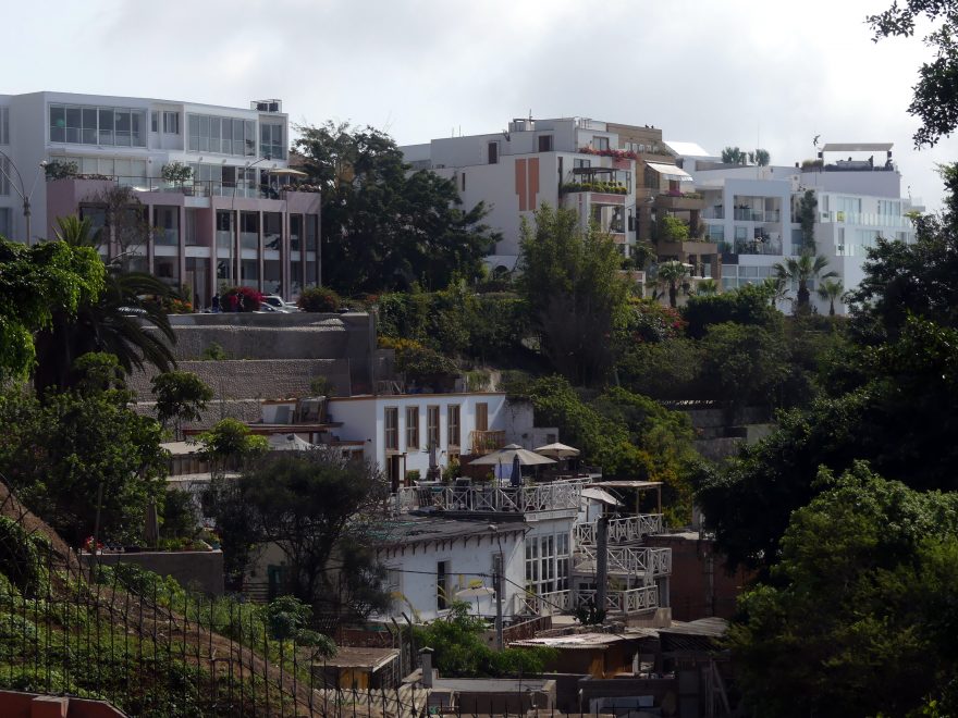 Lima, ale i jiná města, se honosí čtvrtěmi, jež jasně dokazují, že Peru ani zdaleka není chudou zemí, jak si my Evropané myslíme. Jen tu, podobně jako v jiných zemích Latinské Ameriky, sociální nůžky dělají své – na jedné straně lidé bez přístupu k vodě ve vodovodu, na druhé straně luxusní vily s bazény…