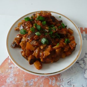 Adžapsandali – Vegetariánské jídlo, základem jsou baklažány, rajčata, brambory a papriky podušené a ochucené čerstvými bylinkami.