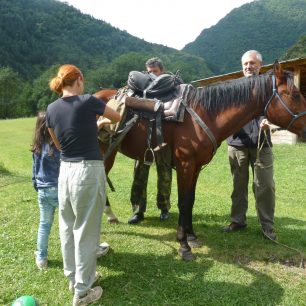 Vyrážíme tedy hned ráno. Nasedláme zvláštní velmi pohodlná kavkazská sedla, na zásobního koně navěsíme stany, batohy a vaky s potravinami a vydáváme se vstříc velkému horskému dobrodružství.