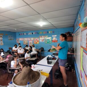 Jedna z mnoha přednášek na školách, tady na Roatánu v Hondurasu