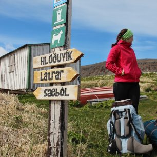 Nebe se vyjasňuje a my pomalu scházíme k pláži. Je potřeba přebrodit několik ledových pramínků, než se dostaneme na místo tábořiště. Srovnaný plácek u opuštěné osady Látrar je snadno k nalezení, na jeho okraji stojí skvěle udržovaný suchý záchod a od stanů je nádherný výhled na azurově modrou hladinu vody. Vzhledem k nevypočitatelnosti místního počasí, je pro turisty připraven i nouzový úkryt v podobě čistého plechového domečku.