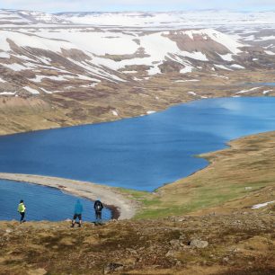 I když dole u fjordu je poměrně hezky, vrcholky jsou zahalené v těžkých šedých mracích, a tak se jeví logičtěji opravdu rychle překonat vyšší polohy a opět sejít k oceánu. Velcí kamenní mužici nám pomohou najít cestu. Bloudění v bílé tmě není úplně nejpříjemnější, ale po třech hodinách se nám otevírá výhled na Adalvík a několik pramínků ledové řeky plné divokých hus.