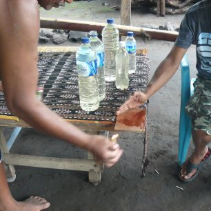 Arak tady pálí doslova každá rodina. Vyrábí se ze tří druhů palem. Připravený tekutý základ se destiluje nejméně třikrát ve velmi primitivních destilačních zařízeních. Chladící část destilátu tvoří dutá bambusová roura dlouhá šest metrů, z jehož konce vytéká tento zázračný destilát. Kvalita se kontroluje zapálením, a pokud hoří barvou jimi vyřčenou, zázračná tekutina je pitná. Slovo metylalkohol je všem cizí, stejně jako nějaká státní kontrola či zákon o zákazu pálení. Třikrát přepálený destilát jsem okusil a litrovou láhev koupil.