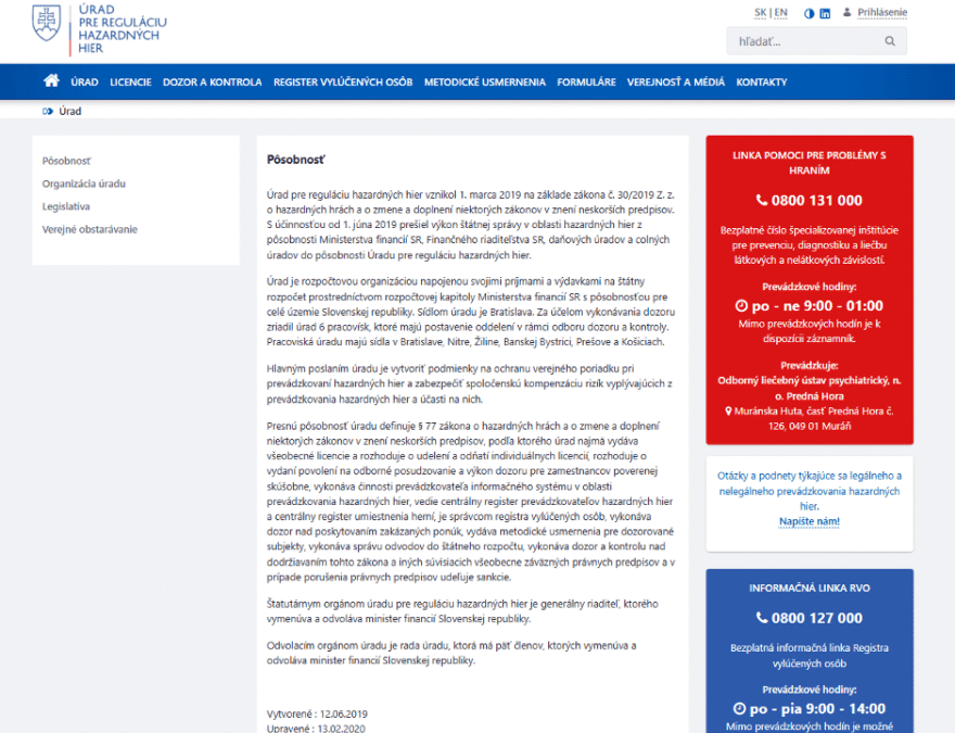 - Kontrola „černého seznamu“ a registrů regulátora Slovenska (ÚRHH).