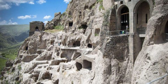 Jeskynní komplex ve Vardzii byl vytesán do skal již ve 12. století. Bylo zde vše, co mohli obyvatelé potřebovat. Do několika set umělých jeskyní se mohlo v případě nebezpečí ukrýt až 50 000 lidí! Měli tu i katedrálu a spoustu dalších menších svatyní, fungoval zde proslavený klášter. Ve 13. století poškodilo celý komplex zemětřesení. V 16. století vtrhli do Vardzie Peršané a v těžkých bojích byli nakonec obyvatelé poraženi a komplex byl opuštěn.
