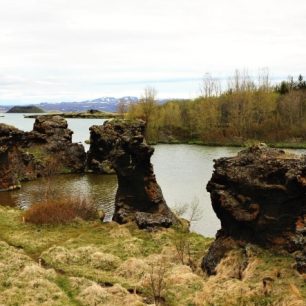 Bublající a kouřící bahnitá jezírka, pach síry, fantaskní tvary lávových soch, sopečné krátery i temná lávová pole. To je drsně krásná krajina v okolí jezera Mývatn.