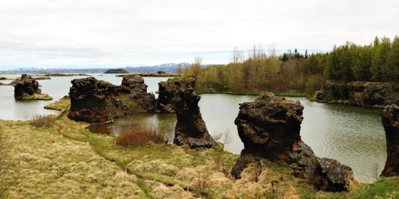 Mnohem větší a strašidelnější lávové útvary pak najdete dále na sever v oblasti Dimmuborgir, což v překladu příznačně znamená Temné hrady. Když projdete tímto již dávno vychladlým lávovým proudem, dostanete se až ke štěrkovému kráteru Hverfell. Výstup na něj je poměrně zdlouhavý a prašný, ale z vrcholku uvidíte nejen vnitřek kráteru, ale zejména celé panorama jezera.