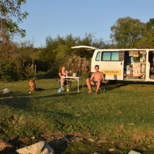 Jindra: S nadsázkou se dá říct, že zaparkovat se dá téměř kdekoliv, vodu doberete většinou také bez problémů, pokud nepotřebujete horkou sprchu každý den, tak koupání vyřešíte řekou, jezerem, kanistrem, či ve větších obytňácích sprchou apod.