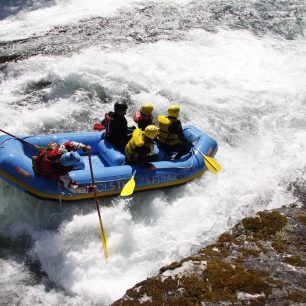 Před kamenem musíte raft stočit prudce doprava o 90 stupňů. A pak už si jen užit třímetrový slide. Téhle cestě se říká „Highway to Heaven“. Levá cesta se jmenuje „Highway to Hell“, protože masivní válec, který na vás čeká dole, nic neodpouští a ani nepouští.