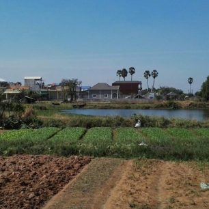 Stačí vyjet malým trajektem za 500 rielů na Silk Island s hedvábnou vesničkou (kterou snadno projedete na kole) nebo několik kilometrů za město (taky na kole, akorát je potřeba zůstat v klidu na frekventovaných silnicích, kde se mísí nákladní auta s osobními, traktory, motorkami, tuk tuky a rikšami i koly) a otevřou se vám nádherné scenérie s potoky, rybníky, lotosovými i rýžovými poli a záhony s povíjnicí vodní (vodní špenát). Místní děti tu v polích pro zábavu chytají hady (v Kambodži je stále povoleno je i jíst), pasou se tu krávy i buvoli a po prašných i bahnitých cestách se vám pod kola motají kachny a kuřata.