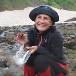 Podle GPS souřadnic dojdeme ke geotermální elektrárně, kde si najdeme plácek na stan kousíček od termálního pramene. V neutuchajícím dešti postavíme stany, skočíme do teplé vody nahřát se a pak už jen čekáme, až přestane pršet. Čekáme den, dva a pořád leje jako z konve. Třetí den se konečně probudíme do krásného rána, tak nemeškáme a vyrazíme na jedenáct kilometrů vzdálenou Mutnovku. Už během výstupu se počasí pomalu vrátí k deštivému normálu, ale při vstupu do kráteru na déšť a mlhu úplně zapomeneme. Vstupujeme do pekla. Všude je cítit síra a bublají fumaroly a bahenní sopky. Místy bahno, místy ledovec. Spokojenost maximální. Návrat do stanu je spíš úprk.