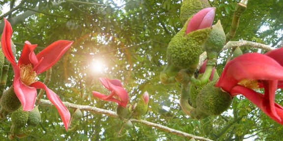Přírodní hedvábí nebo rostlinné peří. Kapok je duté vlákno ze semen stromu Ceiba pentandra, které díky svým jedinečným vlastnostem odpuzují hmyz a ve vodě se nepotápí.
