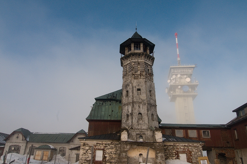 Lyžařům svištícím po bělostné pokrývce je většinou jedno, jaké geologické podloží mají pod skluznicemi. Pokud by se chtěli, například před milenkou, blýsknout nějakou znalostí z regionu, tak tady je pár faktů. Na svorovém vrcholu Klínovce (Keilberg) stávala už roku 1817 dřevěná pyramida umožňující turistům výhled. Od roku 1838 tam stávala stavba zřízená jáchymovským poštmistrem, který od 30 let později shořela. Dneska je na vrcholu 80 vysoká televizní věž v jejím stínu se krčí troska rozhledny ozdobená zákazem vstupu. Stavba osmiboké kamenné rozhledny byla zahájena roku 1883, o 10 let později hned vedle ní vznikl hostinec. Jak se může každý návštěvník přesvědčit, stavba chátrala, chátrala až do stavu, kdy by bylo lepší ji zbourat a postavit novou. Což je ovšem problém, neb na to jednak nejsou peníze a chybí povolení památkářů.