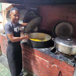 Kuchyně v restauraci v centru města Camagüey. Prostorem se nesla nádherná vůně dřeva a uhlí, na kterém vařil.
