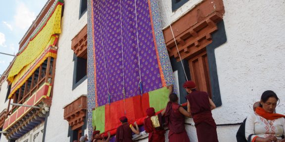 Bum, bum, bum! Už od rána se z dolní části Lehu ozývá hlasitá rytmická hudba. Copak se tam asi dějě? Vyrážíme na obhlídku. Obyvatelé Lehu a okolí jsou rozděleni na mnoho různých komunit. Každá skupina pořádá jednou ročně oslavu. Základem slavnosti jsou mužské lukostřelcké závody, veselá muzika, dobré jídlo a čang – domácí ječmenné pivo.