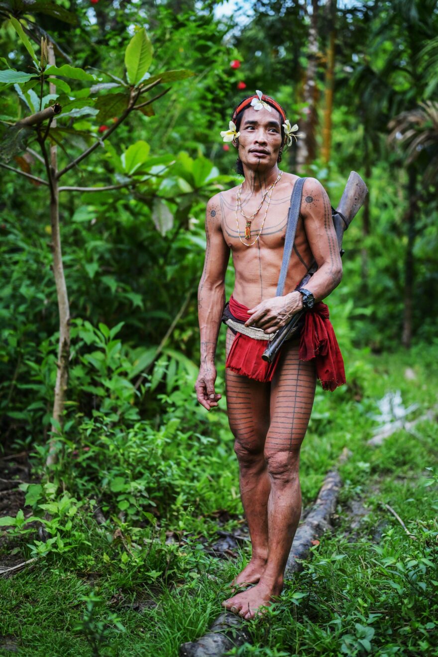 Nazítří vyrážíme mimo civilizaci, kde ještě některé Mentawajce uvidíte v tradičních bederních rouškách, silně potetované a s květinami ve vlasech. Na několikadenní cestu musíme nakoupit zásoby jídla a hlavně tabák a cigarety – ty prý otvírají srdce domorodců a svolnost k fotografování. Jedeme několik hodin proti proudu řeky do opravdové džungle, kde není elektřina ani signál. Vyfasoval jsem vysoké holiny, v nichž se pak s Korneliem a jeho synem brodíme bahnitými cestami do vesnice Batosap. Tady bydlí šaman Marcus, mentawajským jménem Tagogo, se svou ženou Teotagogo.