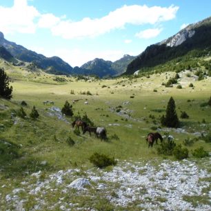Za Idbarem se pak už postupně vytrácejí stopy civilizace a nahrazují je bukové lesy, kupodivu mnohem větší než ty, co rostou v nižších polohách u jezera. Na konci údolí nás čekal příkrý svah s 500m převýšením. Odměnou nám byli sluncem vybělené skály a svěží horský vzduch. Nocovali jsme na svazích hory Velikogo Brdo.
