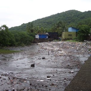 Začínáme prohlídkou vesnice. Procházíme mezi domky místních obyvatel. Všude je tu špína. Zastavujeme na zpevněném břehu moře. Na okraji stojí latríny, které jsou vyvedeny přímo do vody. Od samotné vodní plochy nás dělí pás mangrovových porostů, mezi nimiž jsou usazené snad tuny odpadků.