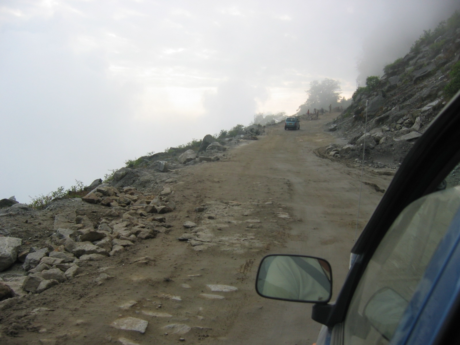 Bujná zeleň, která se míhá za okny mikrobusu je místy přerušovaná terasovitými políčky s venkovskými domky, provizorními stany silničních dělníků a hnědou zvlněnou masou sesutých skal. Kopce před námi stoupají velmi prudce, silnička je lemuje v nepravidelných smyčkách, vytrvale se plazí stále vzhůru v krkolomných zatáčkách, občas jí kus chybí, jinde je zatarasená čerstvým závalem zeminy. Silnička – jak poklidné jméno pro prašného kamenitého hádka, který se prokousává věčnými sesuvy a ztrácí v mracích, obklopený otrhanými postavičkami silničních dělníků a dělnic s rouškami na obličejích.