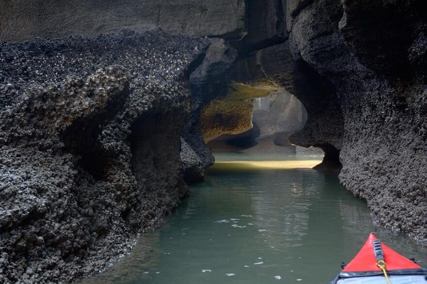 Hlavní a fantastickou zajímavostí neobydleného ostrova Ko Khao Yai poblíž přístavního městečka Pak Bara, který je součástí UNESCO, je skalní útvar Prasat Hin Pun Yot. Šedá skalní masa na severním cípu ostrova je větrem, deštěm a mořem vyerodovaná do útvarů připomínajících natěsno naskládané věže, mezi kterými je v úrovni mořské hladiny několik otvorů dostatečně velkých, aby se jimi dalo proplout na kajaku. Tato skalní brána mě dovedla do okrouhlé laguny ze všech stran sevřené dalšími svislými skalními útvary. Z jedné strany laguny vede skalní tunel ven na otevřené moře, z druhé strany potom úzká soutěska vedoucí do malé skalnaté zátočiny.
