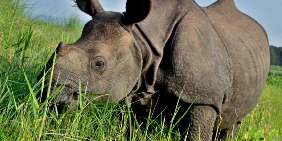 Vyšli jsme na malou mýtinku uprostřed pralesa. Na osamoceném stromě sedělo velké hejno čápů – openbill stork (Anastomus oscitans). Začali jsme z batohu vytahovat teleobjektiv a zcela automaticky se přibližovat co nejblíže k objektu našeho zájmu. Po chvíli čápy odlétli a průvodce opět vykročil kupředu. Udělal však jen dva kroky a hned se k nám otočil. Ve tváři měl vepsáno vzrušení i obavy – asi šest či sedm metrů před námi stál nosorožec.