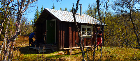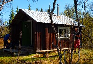 Uvnitř je chata krásná, celá ve dřevě, a navíc výborně vybavená: kamna, nádobí, trvanlivé potraviny, naštípané dříví a nezbytný deník, kam se večer za praskání kamen zapisujeme a do nebes vychvalujeme Švédský turistický spolek (Svenska Turistföreningen, zkráceně STF) za úžasné ubytování. Je nám jasné, že v sezóně by bylo asi nemožné být v této chatě úplně o samotě.