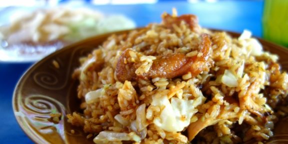 3) nasi goreng se často připravuje i jako varianta s kuřetem: Krátce po přidání cibule přidáme na kostky nakrájené kuře (kuřecí prsa; množství podle chuti, ale po indonésku spíše méně) pak přidáme česnek a dusíme, dokud není kuře „hotové“, pak přidáme rýži a ostatní přísady, podle výše uvedeného postupu.