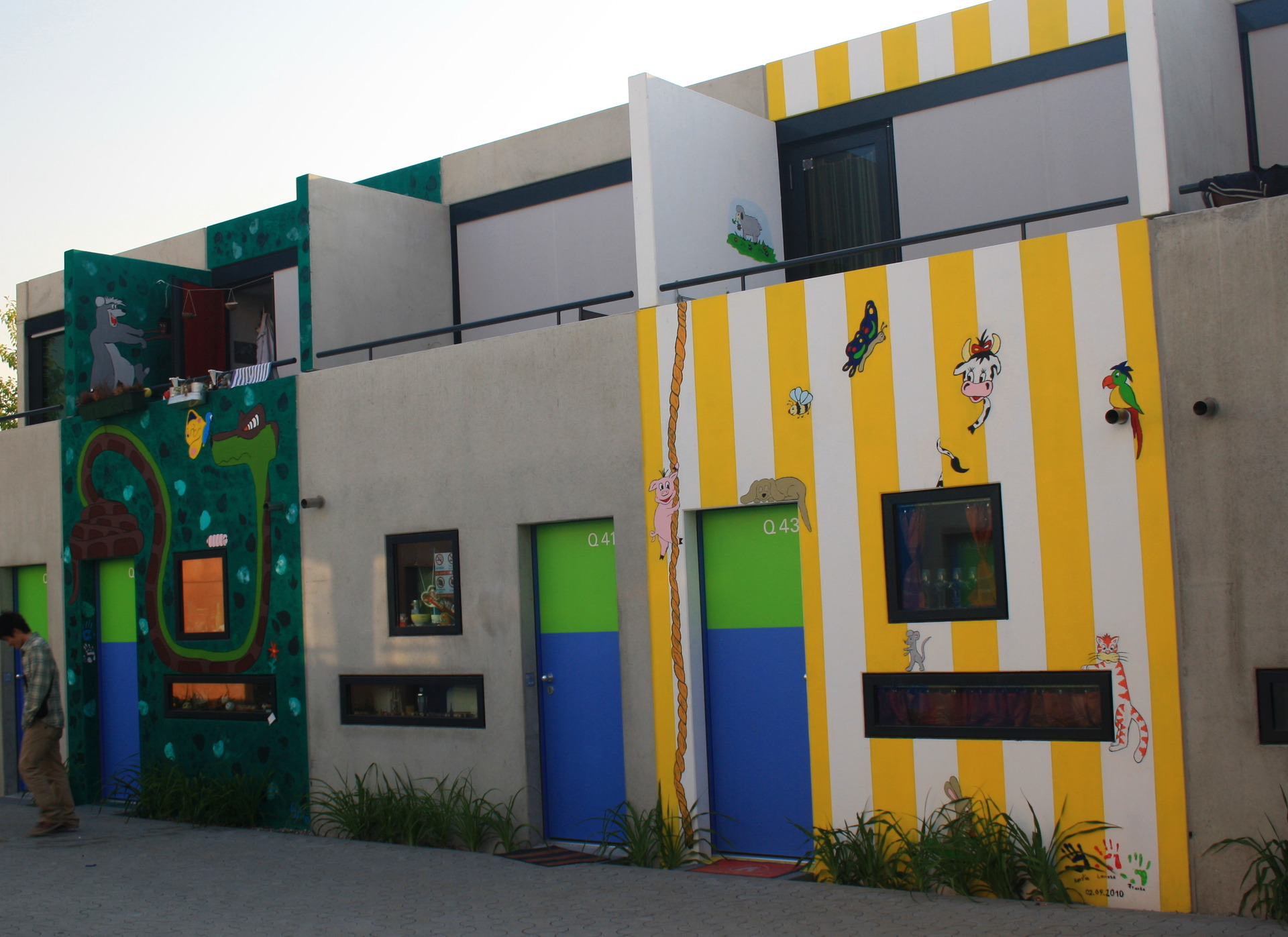 Přejít do galerieBývalé olympijské městečko dnes slouží opravdu jen studentům. Najdete tam spousty dvoupatrových domečků, které jsou obydlené jedním nebo dvěma studenty. Každý si může buňku pomalovat přesně podle svých představ, a tak se na zdech houpou opice na liánách, lezou drsní horolezci a plazí se hadi. Nechybí ani obří puntíky nebo velké zebří pruhy.