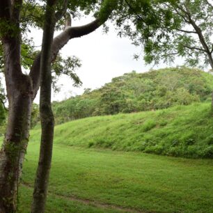 Hliněnou klikatící se cestičku v parku nám sem tam zkříží stezka obřích ohnivých mravenců. Na vrchol zarostlé pyramidy vede úzká vyšlapaná pěšinka. Nejstarší pyramida Ameriky je totiž z navršené hlíny, pouze na jejím vrcholu kdysi stála dřevěná stavba, chrám. Pyramida byla stupňovitá, svisle vrásněná a na její vrchol vedly 3 mozaikové chodníky. Dost možná se mohlo jednat o vyobrazení posvátné sopky v pohoří Tuxla. Na vrcholu se před námi odhaluje krajina nekonečného porostu rozprostírajícího se na rozsáhlé rovině. V minulosti bychom v krajině spatřili celou řadu umělých ostrůvků a rákosové domy na kůlech. Všechna olmécká města měla centrum od severu k jihu a hlavní třídu lemovanou monumenty. Tam také nacházíme obří čedičové sloupy, ze kterých se kdysi skládala hrobka.