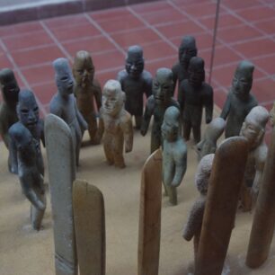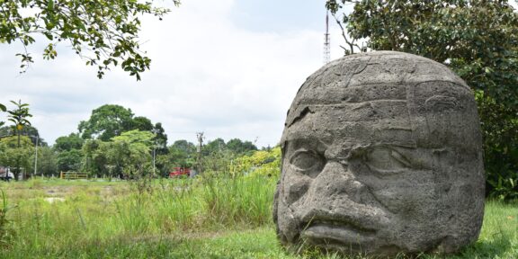 V době našeho příjezdu je na ulicích rušno, podél úzké asfaltky postávají hloučky prodejců a nakupujících, hlavní silnicí pendlují tuk-tuky. U muzea nikdo není, vstupné stojí pouhých 75 pesos. Vcházíme do vestibulu se slaměnou střechou, chodníček areálu nás vede k expozici soch. Vítají nás několikametrové kolosální olmécké hlavy, značně poničené. Ty sem byly kdysi splaveny z více jak osmdesátikilometrové vzdálenosti. Vedou se diskuze, zda šlo o sochy panovníků, či hráčů míčové hry. Tak či tak, byly záměrně poničeny a zakopány. Objeveny byly až v devatenáctém století. Hlavy se svými robustními rysy, mongoloidníma očima, krátkým nosem a širokými ústy nápadně podobají i dnešním místním lidem. Zajímavých exponátů je zde celá řada, jadeitové postavičky, figurky různých tvarů a velikostí, obří kamenné desky s nápisy a mnoho dalších.
