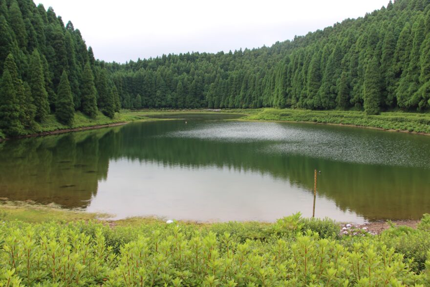 Lagoas Empadadas leží na dně zalesněné kaldery na stezce pěti jezer