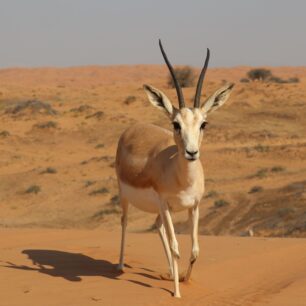 Pokud máte rádi písečné pouště a divoká zvířata, je pro vás návštěva přírodní rezervace Al Wadi téměř nutností. Přímo v pouštní oáze se nachází luxusní rezort Ritz Carlton, kde jsem se já, jakožto homo outdooris, cítil doslova jako na jiné planetě. Tento ohromující hotel dobře poslouží jako výchozí bod vašich dalších aktivit. Můžete podnikat túry na velbloudech, na koních nebo si zde půjčit fat-bike a vyrazit do dun. My jsme zde absolvovali projížďku terénními buginami po dunovišti. Nejeli jsme se tam ale jen prohánět po dunách, naším hlavním cílem bylo pozorování místních oryxů. Náš řidič, který byl zároveň i průvodcem, poutavě vyprávěl o těchto nádherných zvířatech. Oryx leucoryx, v překladu přímorožec arabský, je antilopa nižší postavy s protáhlejší hlavou, delším ocasem a dlouhými rohy, pro kterou je typické bílé zbarvení těla. Tato vzácná zvířata (ve volné přírodě jich žije už jen 1000) tu můžete pozorovat, jak ve stádech volně běhají po nekonečných oranžových dunách.
