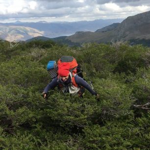 Tak trochu jinak parafrázované “Kde je vůle, tam je i cesta.” V Patagonii někdy není ani takový problém, že jdeme na těžko do strmých kopců, ale spíš to, že není žádná cesta, po které bychom šly. Nám českým turistům s dokonalým značením i těch nejmenších cestiček napříč celou republikou se na to těžko zvyká. Prostě je v mapě zaznačeno, že se má jít od ohybu řeky směrem na jih do kopce a všechno tam je – meandr řeky i ten kopec – jen chybí byť i jen náznak cesty. Všude bambus, nebo keře, nebo písek, ale cestu si najdi sám. Takže za den neujdeme dvacet kilometrů, některé dny jsme měly problém ujít i jen deset kilometrů.