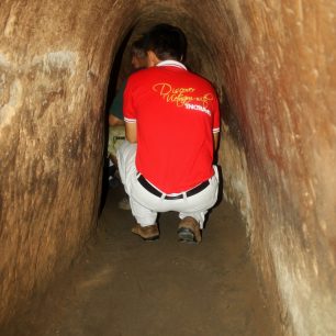 Zhluboka se nadechuju a po třech schůdcích scházím do uzoučké chodbičky, kudy projdete jen úplně ohnutí v pase. Po třech metrech se cosi uvnitř mě sevře, těžký horký vzduch mi dosedne na plíce a já se rychle otáčím zpět. Severní a jižní Vietnam dělila sedmnáctá rovnoběžka. Přesto Ho Chi Minhovi přívrženci existovali docela nedaleko Saigonu, hlavní americké základny, a to ve dvě stě padesát kilometrů dlouhém systému podzemních chodeb. Tři patra pod sebou, nechybí v nich nemocnice, kuchyně ani ložnice. Beze zbraní i dostatečného množství potravin se takto dokázali Američanům bránit po celu dobu války. V muzeu Cu Chi jsou k vidění i pasti původně určené pro zvířata. Jámy plné kokových bodců, nášlapné pasti a další zákeřnosti byli jedinou možností, jak se beze zbraní bránit Jihovietnamské armádě.