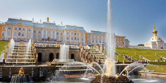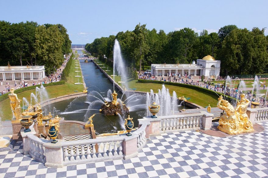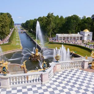 Moskvané se tam jezdí bavit, Skandinávci pít z plna hrdla a zbytek světa vzdychat údivem. Vzpomínky na slávu a eleganci carského města se vynořují z třpytících se odlesků hladiny bezpočtu vodních kanálů a rezonují i v rozlehlých francouzsky upravených parcích a mramorových dvorcích impozantních paláců.