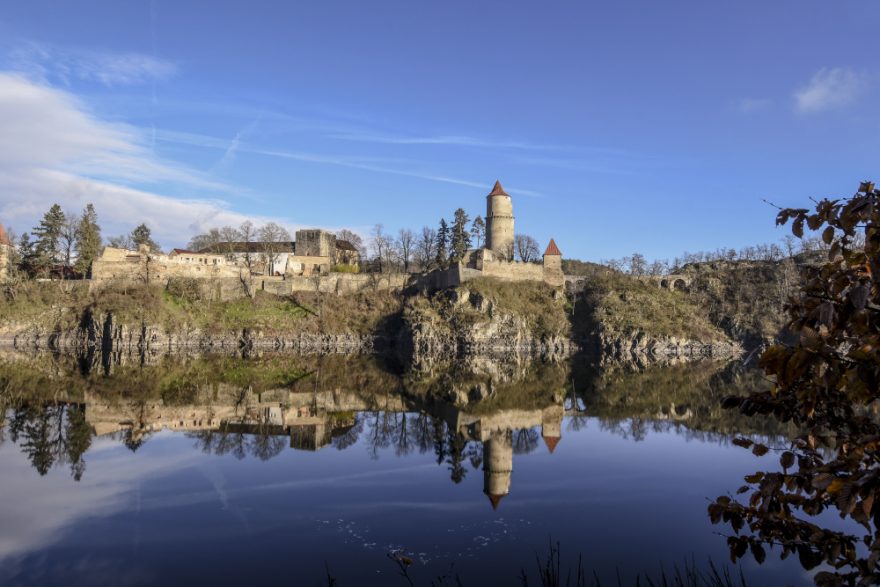Hrad Zvíkov založil na vysokém skalním ostrohu už Přemysl Otakar I. a hlavní část stavebních prací provedl Václav I. Dnes stojí na poloostrově uprostřed Orlické přehrady téměř jako vodní tvrz a oživuje tak zelené kopečky, mezi nimiž meandruje modravá voda posetá loďkami a plachetnicemi. Do hradu vás uvede vstupní brána střežená věží. Uvnitř hradu a placeného prohlídkového okruhu navštívíte nesmírně cenné a pečlivě rekonstruované gotické interiéry. Nejprve užasnete při pohledu na arkádové nádvoří lomených oblouků, potom si prohlédnete Erbovní a Rytířský sál, Taneční a Korunovační síň, jídelnu, ale vrcholem návštěvy je Svatováclavská kaple vyzdobená renesančními freskami a slepou arkádou s ozdobnými obloučky. Na nejstarší hradní budovu – Markomanku neboli Hlízovou věž, lze vystoupat a užít si nádherný výhled na vodní hladinu.