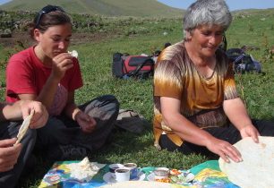 Naše čtyřdenní putování v horách končí v průsmyku vedoucím do Tashiru. V nohách máme asi 70 km, v hlavě zase vzpomínku na krásné setkání s místními pastevci a jejich silné kafé z džezvy. Začíná putování po arménské kultuře. Na vysněné silnici do Tashiru jede v protisměru hovnocuc a pak už nic. Unavení jdeme dlouhé kilometry do údolí pod pásem hor, klesáme serpentiny do rozpálených rovin a situace se zdá beznadějná. Pak zafunguje Arménie! Jedeme stejným hovnocucem, co se vrací. Všichni v kabince na křižovatku a odtud taxíkem za pár šlupek do Tashiru.