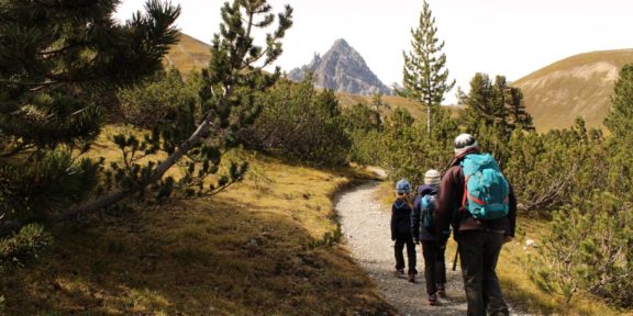 TIP: Pro lehkou tříhodinovou procházku po Via Engiadina z osady Prui do malebné vesničky Sent použijte sedačkovou lanovku z Ftanu. Funguje i v létě a vyveze vás do výšky 2000 m. Dále půjdete po úboční silničce a jakmile opustíte lyžařský areál, sklesáte až do krásného Sentu. Cestou je spousta dřevěných atrakcí a úkolů pro děti.