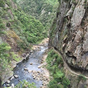 Máme namířeno do městečka Waihi, v pravou chvíli však vidíme po pravé straně lanový most a mohutné kopce za ním. Vypadá to lákavě, a tak zastavujeme. Cedule na parkovišti nás informují o tom, kde se nacházíme. Karangahake Gorge. Jméno trochu krkolomné, ale uvádí se, že se jedná o klenot na jihu poloostrova a jedno ze 101 míst, které musí každý „kiwi“ navštívit. Karangahake Gorge bylo ve své době jedním z center zlaté horečky. Právě tady se těžilo zlato, ačkoliz původní slávy dnes mnoho nezůstalo. Volíme trasu „Windows walk“, která trvá dvě a půl hodiny. Třeba nějaké zlato ještě najdeme.