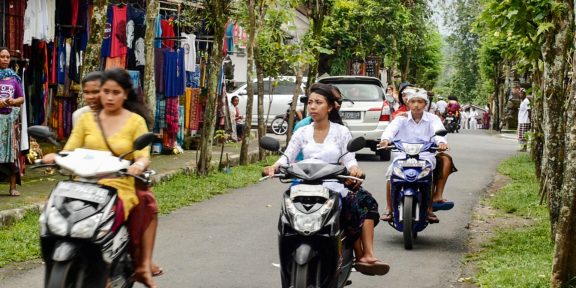 Ani krok pěšky! Tento fakt je zdůvodňován tím, že je v Indonésii vedro na to, aby se chodilo pěšky, proto se jezdí na motorce. Fakt, že tak se znečišťuje ovzduší a to vedro je tak ještě nesnesitelnější, si nijak nikdo neuvědomuje. Zkrátka v Indonésii je velmi levný provoz motorky a je tu vedro na to, aby se chodilo pěšky.