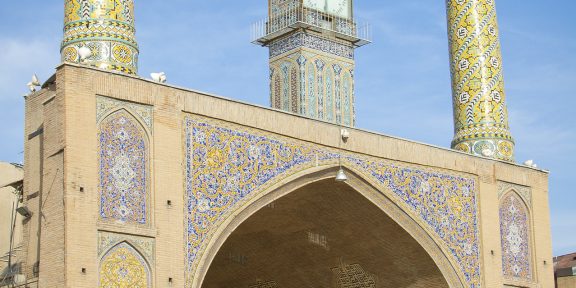 Největší mešita v Íránu je směsicí různých nenásilně propojených stavebních slohů. Na jejím rozšiřování se postupně podíleli seldžučtí Turci, Mongolové, Timur i Safíjovci.