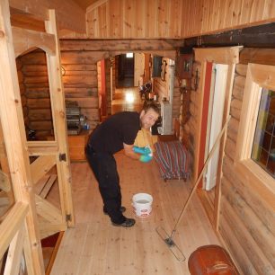 Někdy bylo práce hodně málo a někdy se uklízela téměř celá chalupa. Nevýhodou trochu bylo, že když jsme si chtěli nad-dělat více hodin, tak to nebylo možné, protože v ten okamžik obvykle klientů nebylo mnoho. Jindy jsme se zase mohli zbláznit, abychom vše stihli. Řekla bych, že to byla práce pro 1,5 člověka. Pro jednoho někdy opravdu hodně a pro dva někdy zase hodně málo. Ale i tak jsme si slušně vydělali.