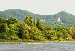 Rozhodli jsme se vyšplhat na Oelberg (460 m), nejvyšší z přibližně čtyřiceti sedmihorských vulkánů. Z parkoviště nám to na vrcholek trvá přibližně 20 minut. Od horské chaty se otevírá pohled na sousední kopečky i daleké Porýní. Výraznou siluetu tvoří kopec Drachenfels (329 m), na jehož vrcholku stojí zřícenina hradu a v sedle pod ním romantický zámeček. Právě tady na Dračí skále se odehrála legendární bitva z eposu o Nibelunzích: Siegfried tu totiž zabil draka. Až nahoru vás může vyvézt zubačka Drachenfelsbahn. Je tu dost rušno, což malinko kazí dojem. Výhled na řeku je ale nádherný. Sjíždíme dolů do Königswinter a vesniček v podhůří.