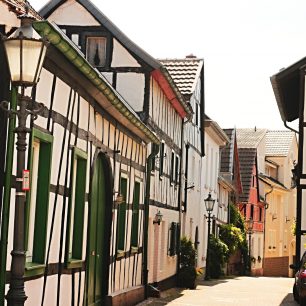 Na hlavní ulici malebné vesnice Niederdollendorf najdeme celou řadu hrázděných domů. Rýnské nábřeží je poseto kavárnami, cyklisté a bruslaři tu krouží sem a tam. Pohoda dýchá i z výše položeného souseda, obce Oberdollendorf. Tam, kde se zvedá úrodný kopeček porostlý vinicí, najdete rozlehlou stinnou zahradu. Pro děti hřiště a zvířátka, pro dospělé spousta vína a dobrého jídla. Spíše festival než restaurace, alespoň svou uvolněnou atmosférou. Sluníčko hřeje, víno leze do hlavy, musíme pryč.