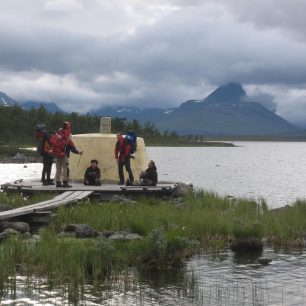 Hned na startu jsme měli dvě možnosti. Buď jít 13 km pěšky z Kilpisjärvi do chaty Kuokimmjärvi, nebo zaplatit 20 euro za loď, přejet jezero a jít asi 4 kilometry. Zvítězila varianta druhá. Mně úplně stačilo ujít asi 500 metrů k přístavišti. Ty bágly se vůbec nedaly zdvihnout ze země, museli jsme si navzájem pomáhat ten krám naložit na záda.