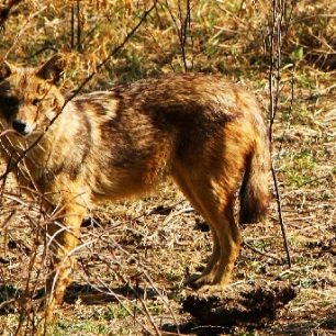 V jednu chvíli se hustý porost nízkých křovin, které většinou obklopují stezku, rozestupuje a necelých pět metrů od nás hodují na uhynulé krávě dva šakali. Okamžitě je poznáváme, protože nám už podobné ukazoval v dalekohledu Kapitán. Ti byli ale stovky metrů daleko. I když dobře vím, že se šakal živí mršinami, značně znejistíme a čekáme, co se bude dít. Dalibor ale nezapře svého fotografického ducha a začne šmátrat po foťáku. Zvířata naštěstí postřehla pohyb. A my hned pochopíme, že jim naše přítomnost není zrovna příjemná. Nechávají zdechlinu zdechlinou a běží se schovat do vyšší trávy.