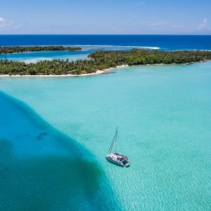Komfortní katamarán se čtyřmi kajutami a prostornou palubou bude naším plovoucím hotelem na následujících 16 dní. Odpoledne vyrážíme z mariny a směřujeme na nejvzdálenější atol Maupiti, vzdálený bezmála padesát mil. Předpověď počasí totiž slibuje na následující tři dny slabý vítr a klidné moře – obojí je potřeba pro průjezd obávaným pasem Onoiau. Úzký vjezd dokáže potrápit i zkušené námořníky, a pokud se moře rozbouří, můžeme zůstat uvězněni na Maupiti i několik týdnů!
